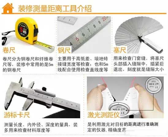 尺寸作为在房屋拆改过程中最基本也是最重要的控制要素之一,尺寸测量要素、测量的方法、 测量精度、测量标准、测量设备都是施工过程中需要注意到的,那么在进行装修拆改时需要用 到哪些测量工具呢?今天我们一起来认识下!