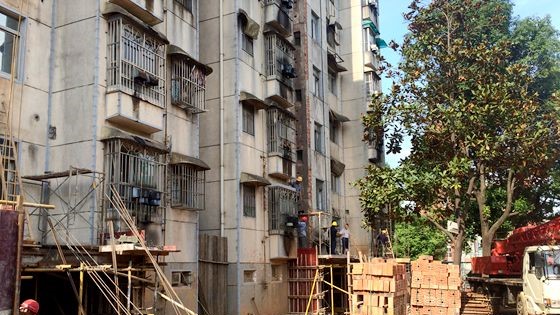 今日,记者在长沙雨花区红叶小区现场看到,加装的钢筋混凝土结构的电梯井道外墙和原来的楼房融为一体,无论是楼底的瓷砖,还是墙体的粉刷,风格基本保持一致。如果不仔细看,不少人会认为电梯是随房屋一同建设。